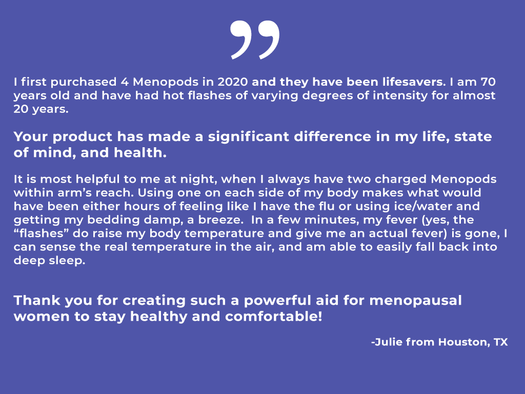 Find it HereMenopod cooling device designed to help menopausal women experiencing hot flashes, night sweats